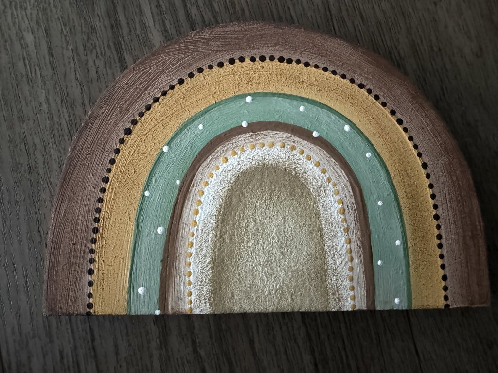 Malá duha v zelené barvě o rozměru 14,5x21 cm.
