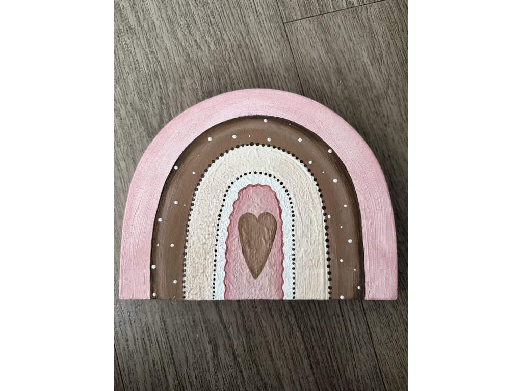 Růžovo hnědá duha v rozměru 16x21,5 cm.