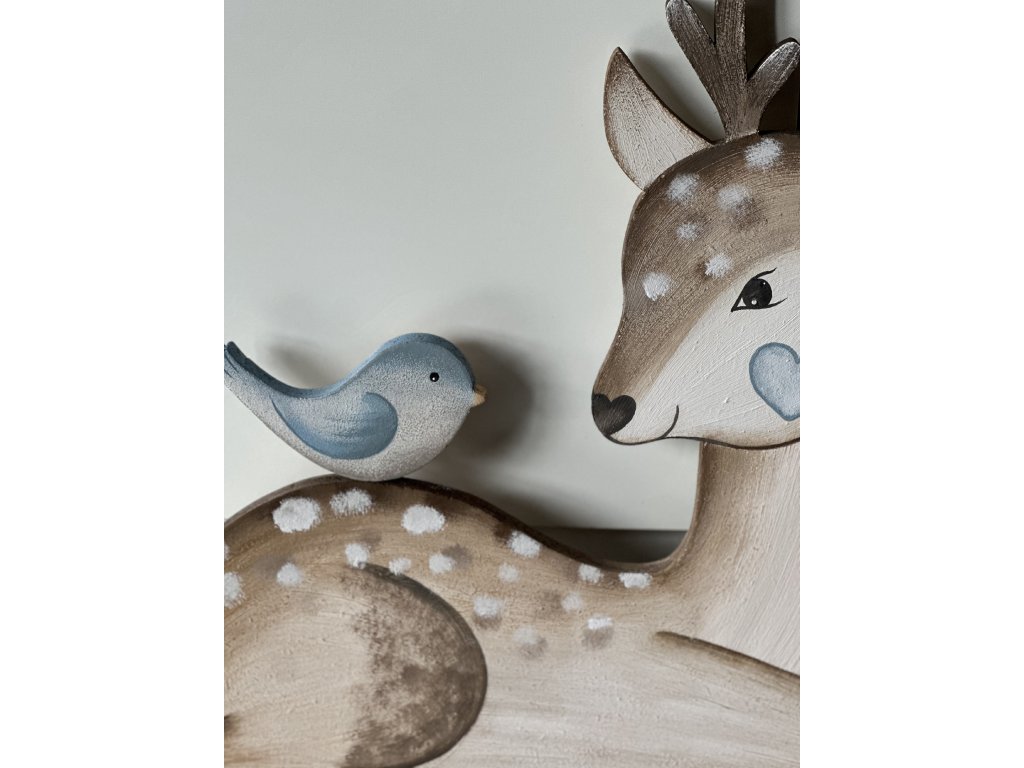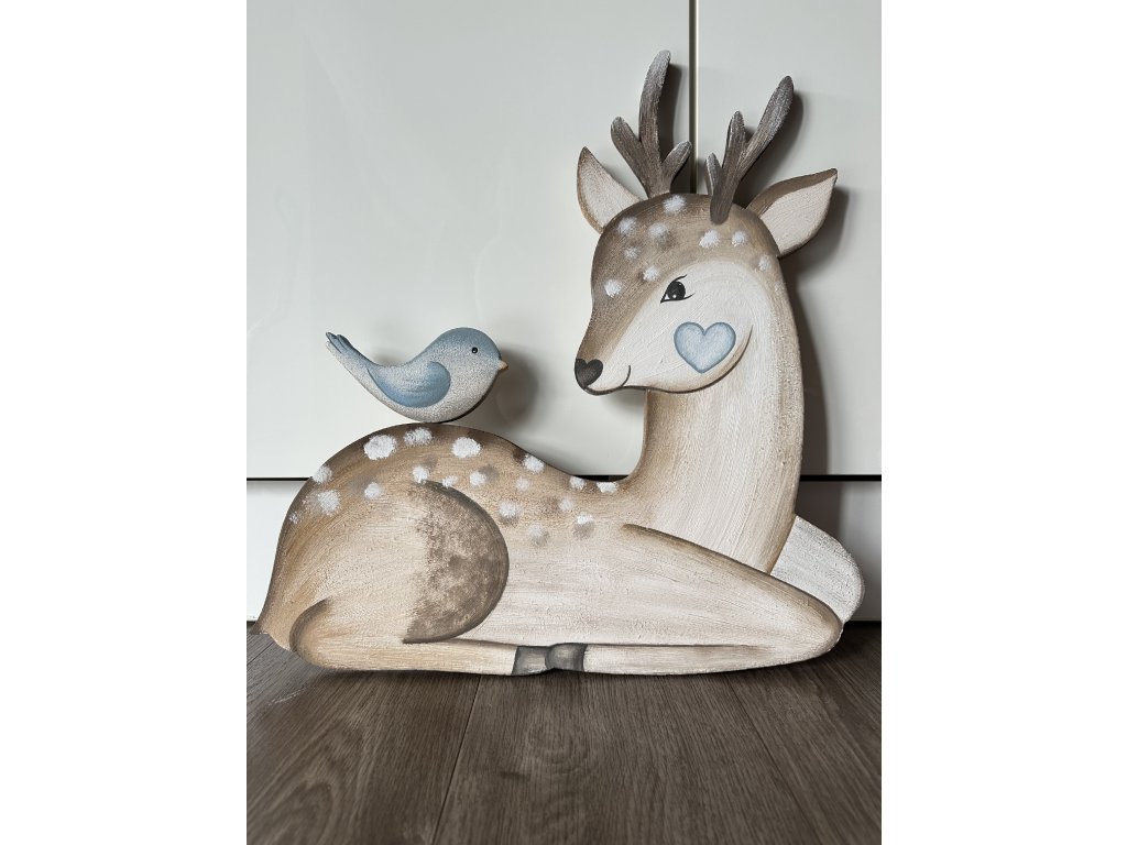 Tento ručně malovaný jelínek ve velikosti 50–55 cm se stane dominantou každého dětského pokojíčku. Jeho jemné detaily a přirozené tóny vnesou do interiéru klid, teplo a kousek lesní atmosféry.