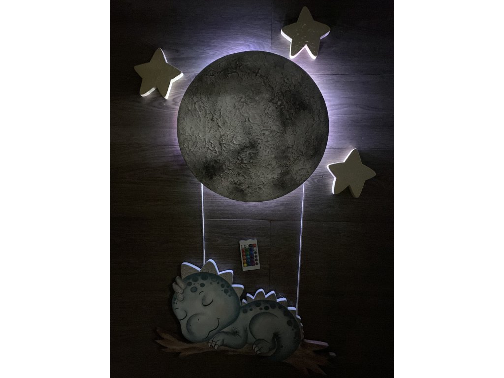💰Cena: Měsíc na baterie 1000,-, dinosaur 750,- a hvězdičky 300,-.