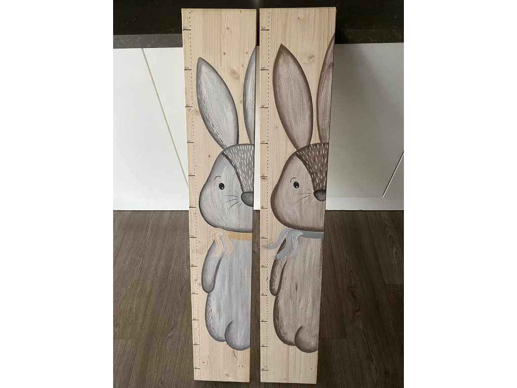 🐇Dřevěný metr s motivem šedého králíka je vyroben na kvalitním smrkovém podkladu.