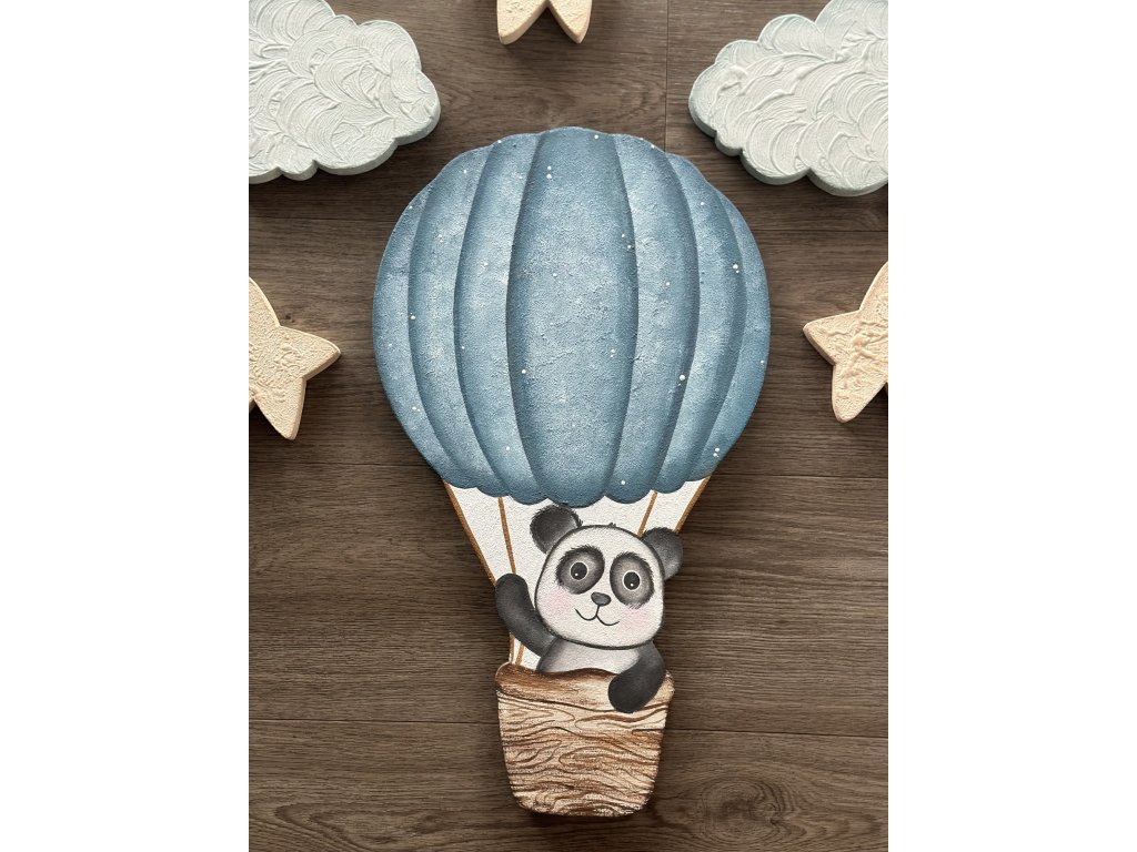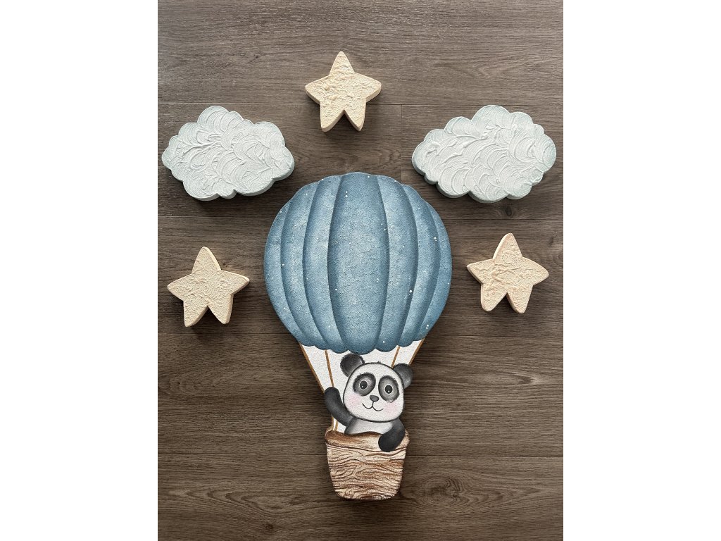 Sada černobílá panda 🐼 v horkovzdušném balónu, doplněna mraky a hvězdami⭐️☁️