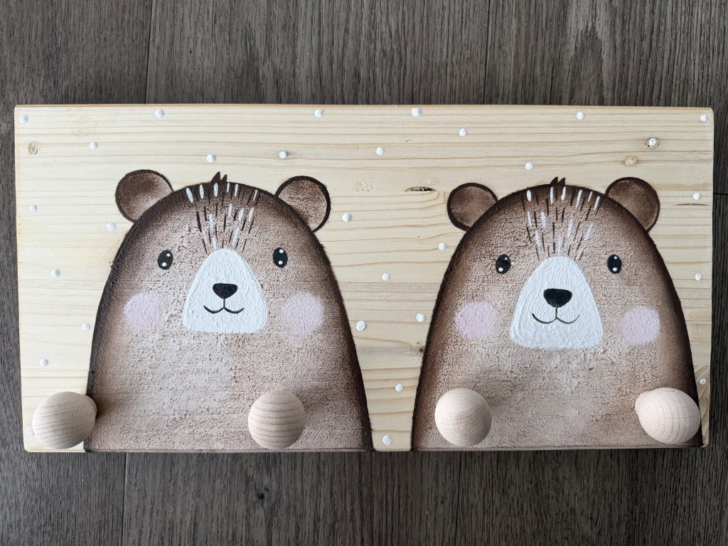 Ručně malovaný věšák a medvědy🐻🐻🐻